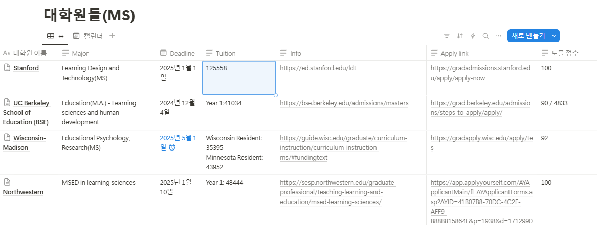 이제 지원할 대학원을 확정하기 위해 보다 자세한 조사에 들어갑니다.