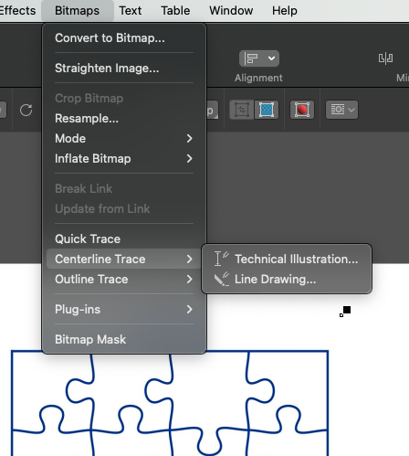 3) Click the image, then go toBitmaps>Centerline Trace>Technical Illustration.