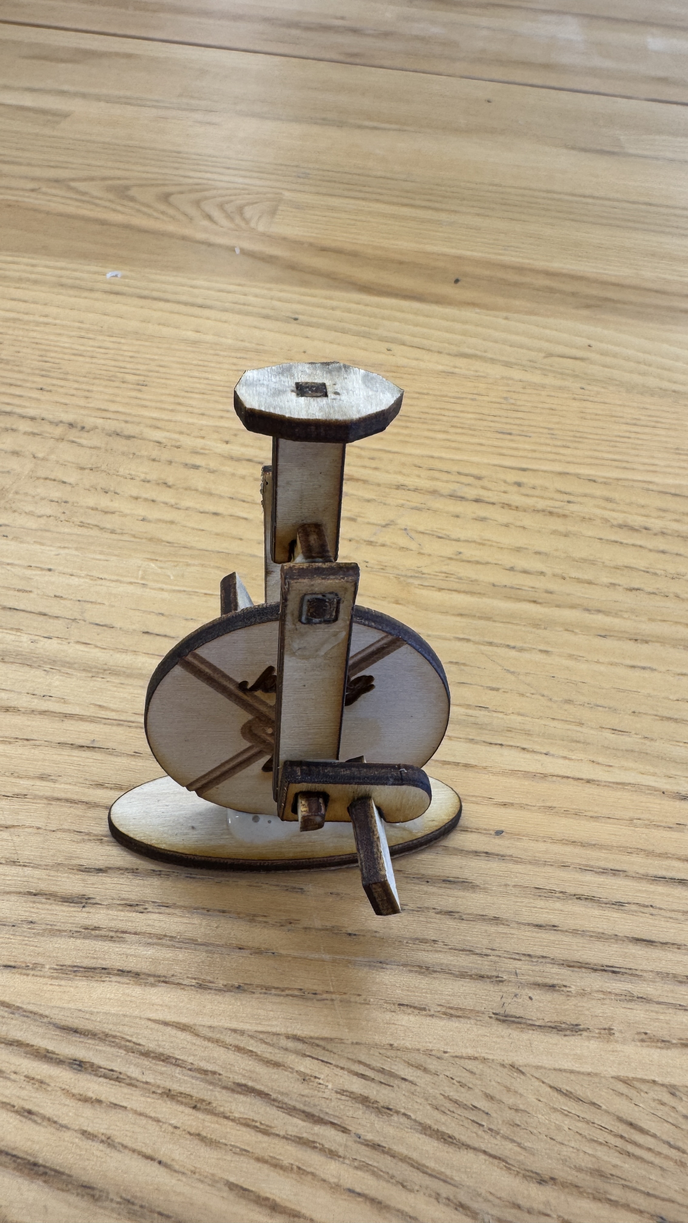 To practice laser cutting and joint techniques, I first created a monocycle-themed name tag to revive my making skills and experiment with joint design.