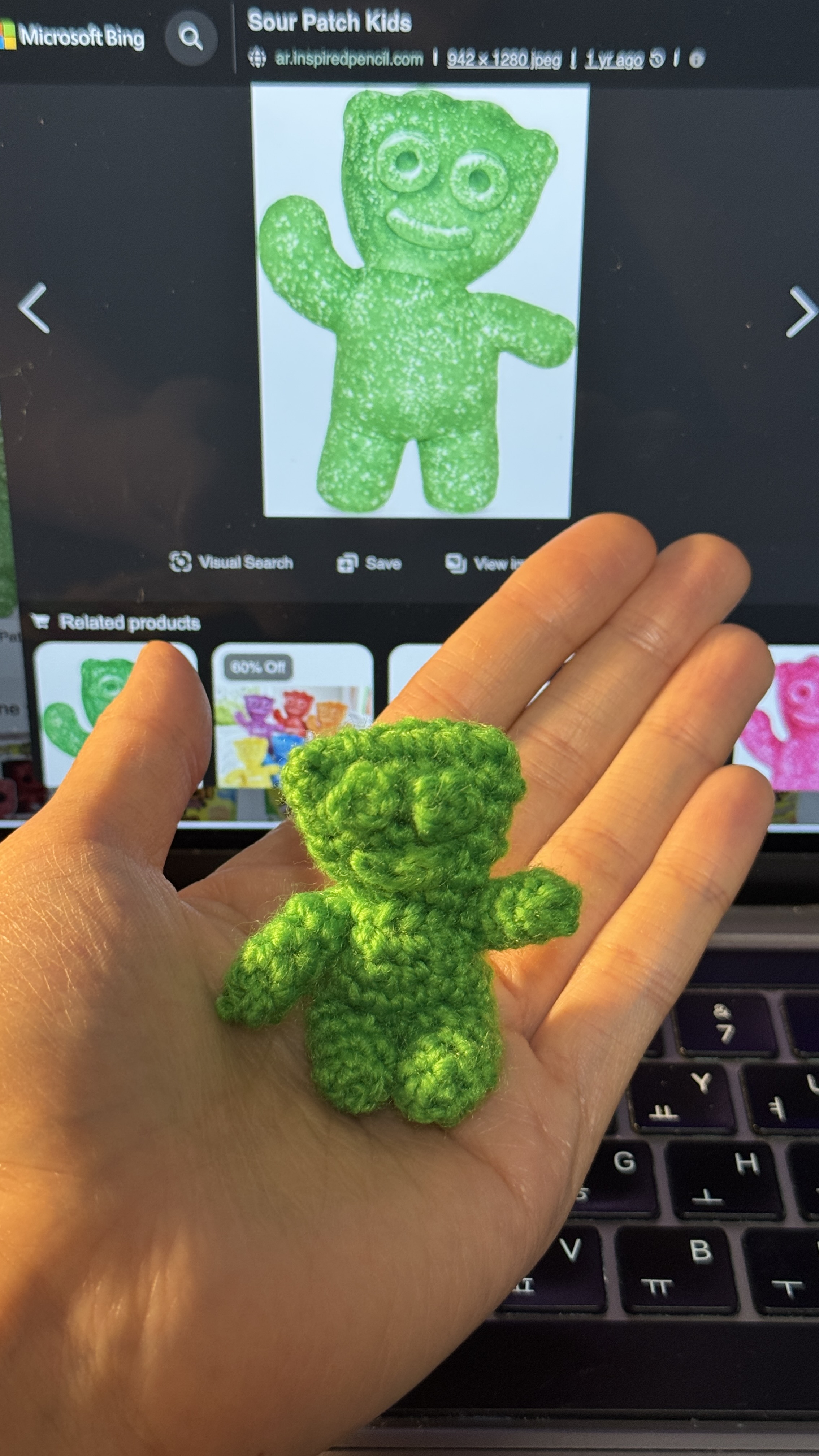 So, I made another Sour Patch Kid at half the original size—about 2 cm tall.