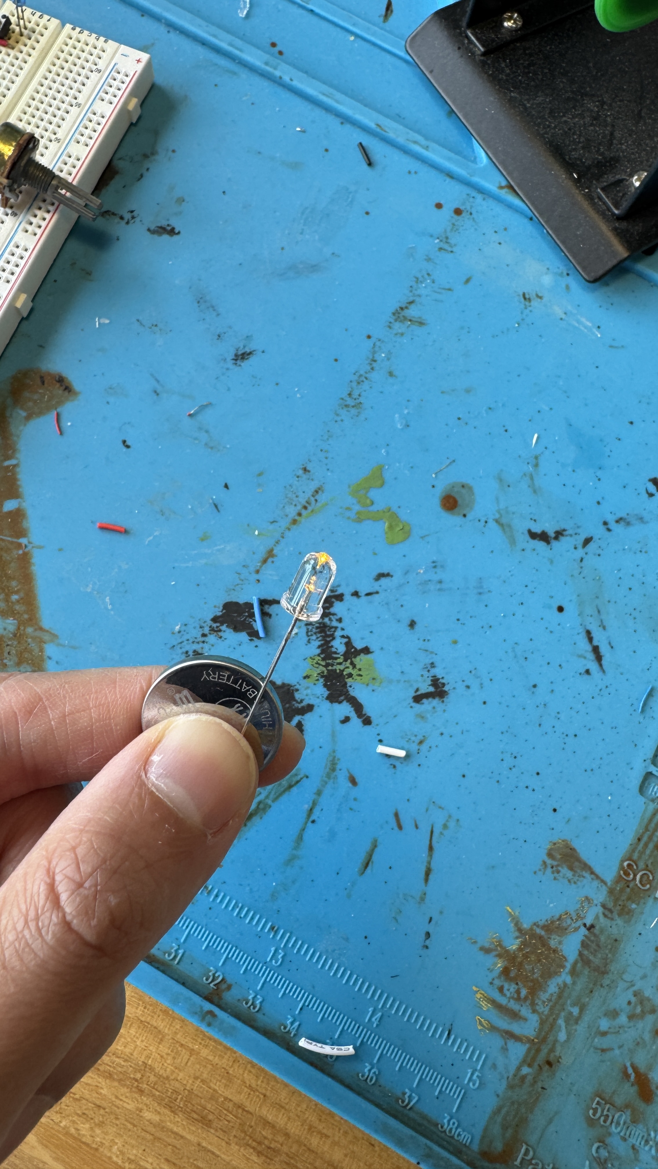 In the end, I soldered the LED and the coin cell holder. Since the holder had a built-in switch, no additional switch was necessary.