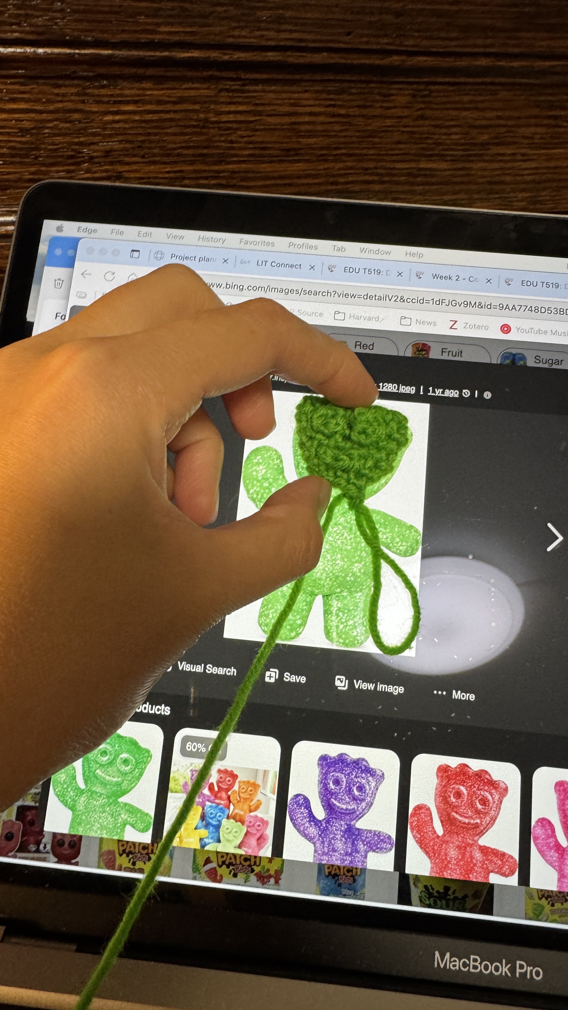 I had a great opportunity to make the Sour Patch Kids during Knit and Crochet Night for graduate students on Wednesday. Although I left my own hooks at home in Korea, I was able to borrow one.