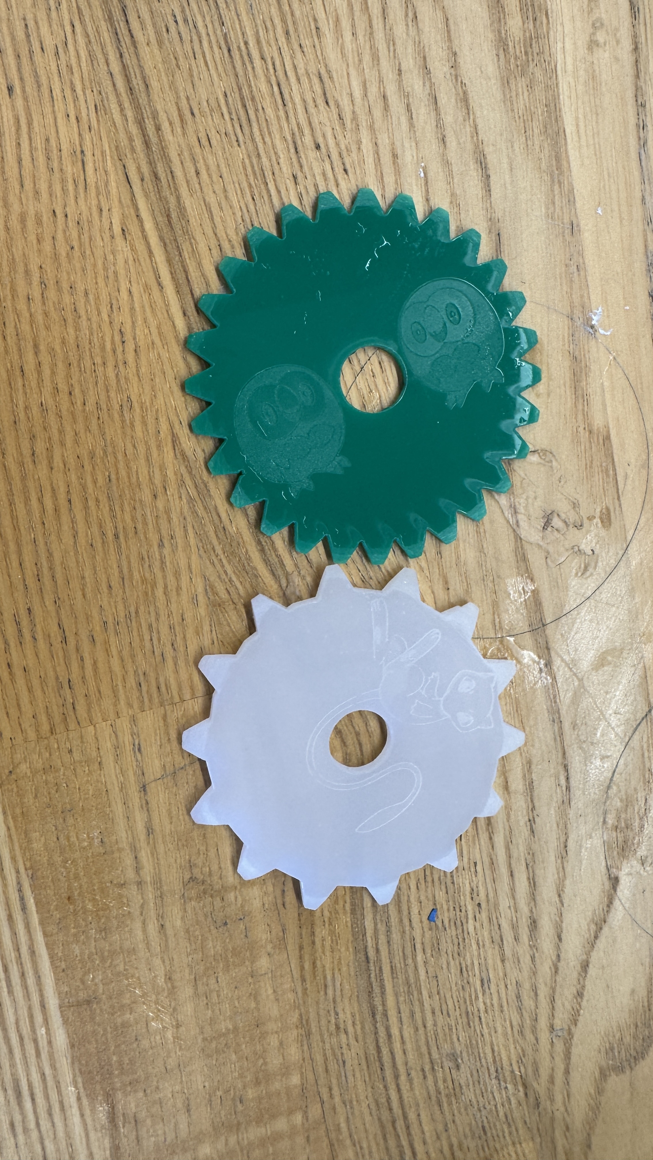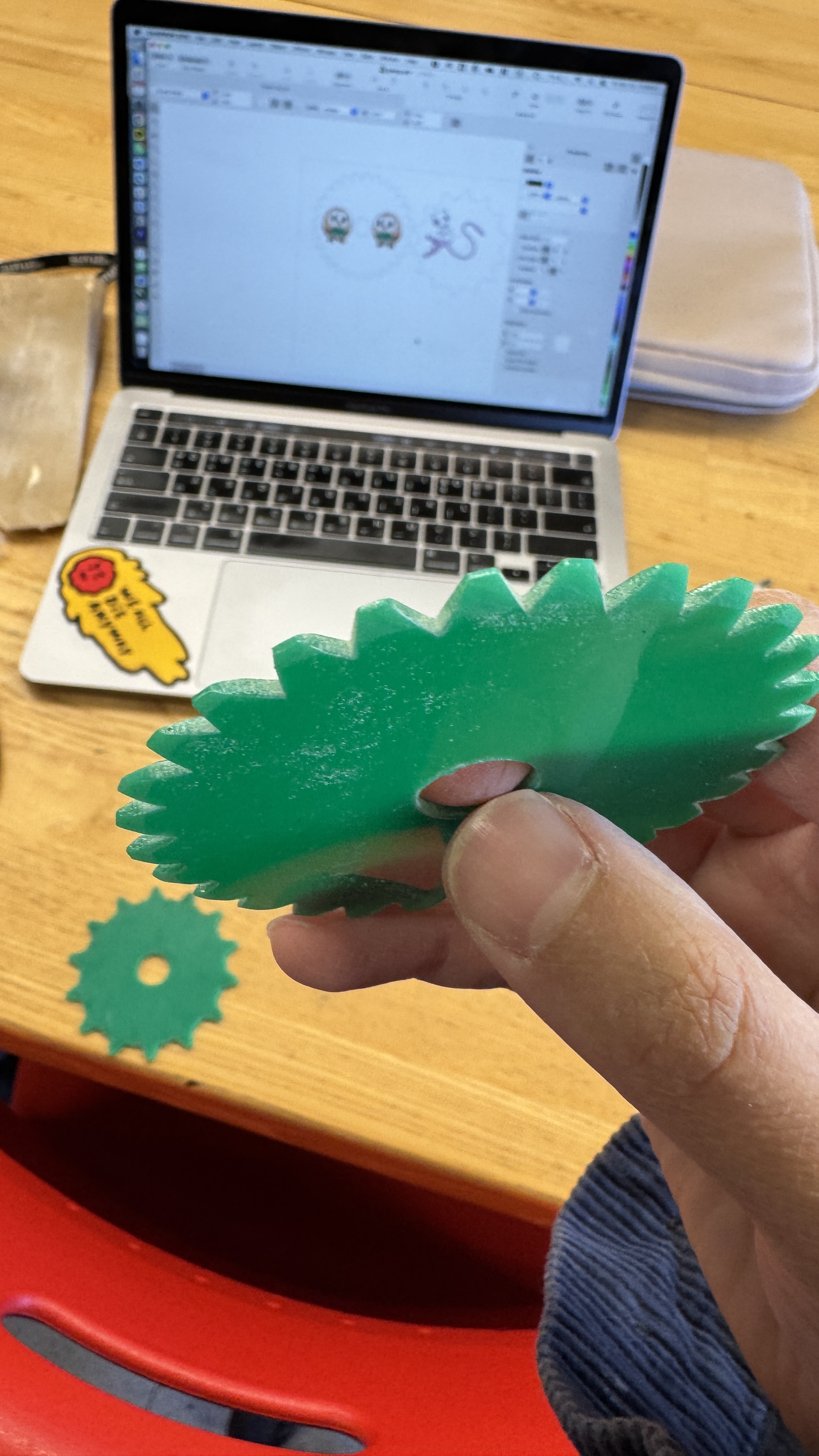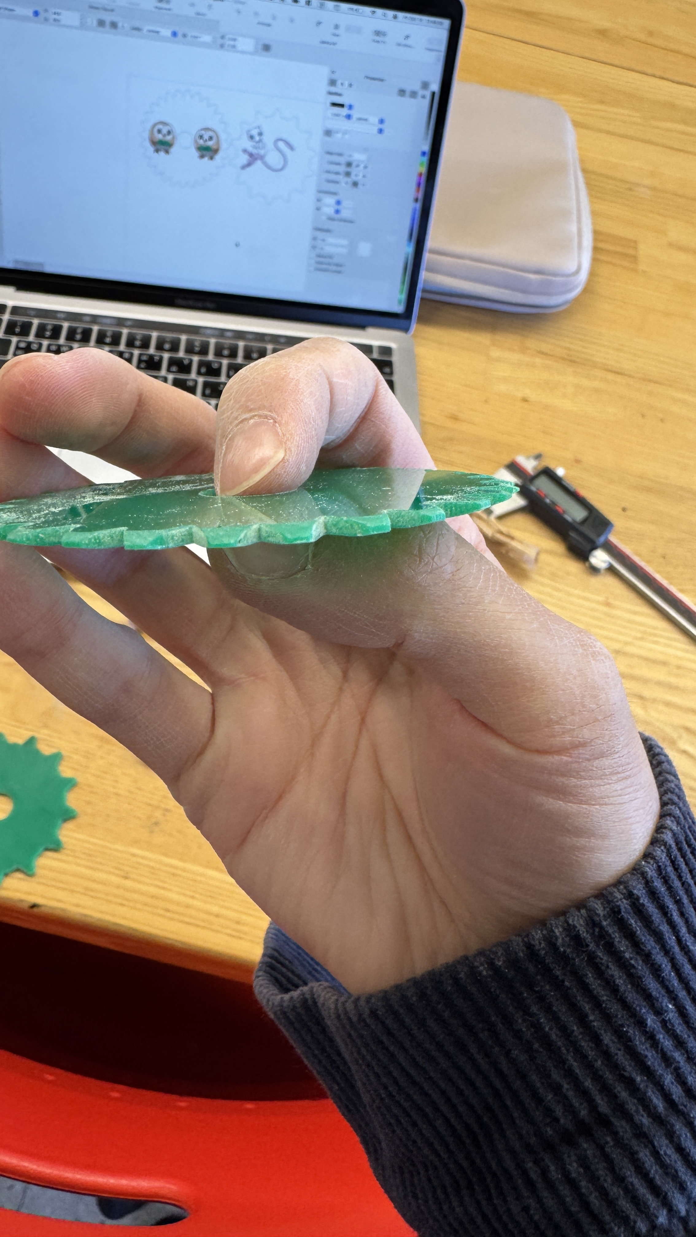 Next, I redesigned the handle. The kerf banded approach looked nice but could not withstand pushing force. I made three connectors so his fingers wouldn’t get hurt. Although some assembly is required, I think he’ll enjoy putting it together. (David added choose which Pokémon to engrave here. Thank you!)
