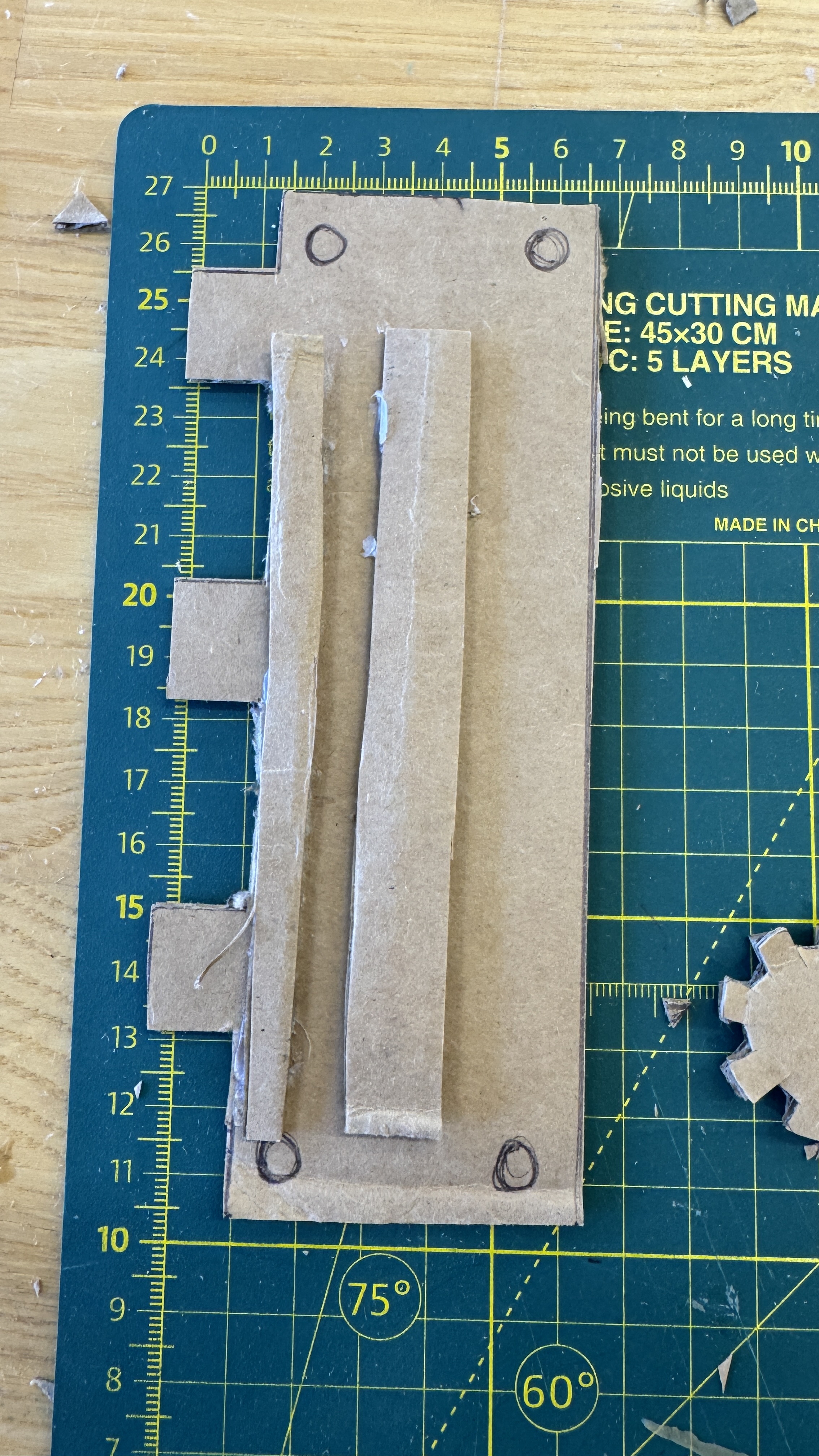 This time, I photographed the prototype on a cutting mat, which will be more helpful as a reference when creating a 2D design file.