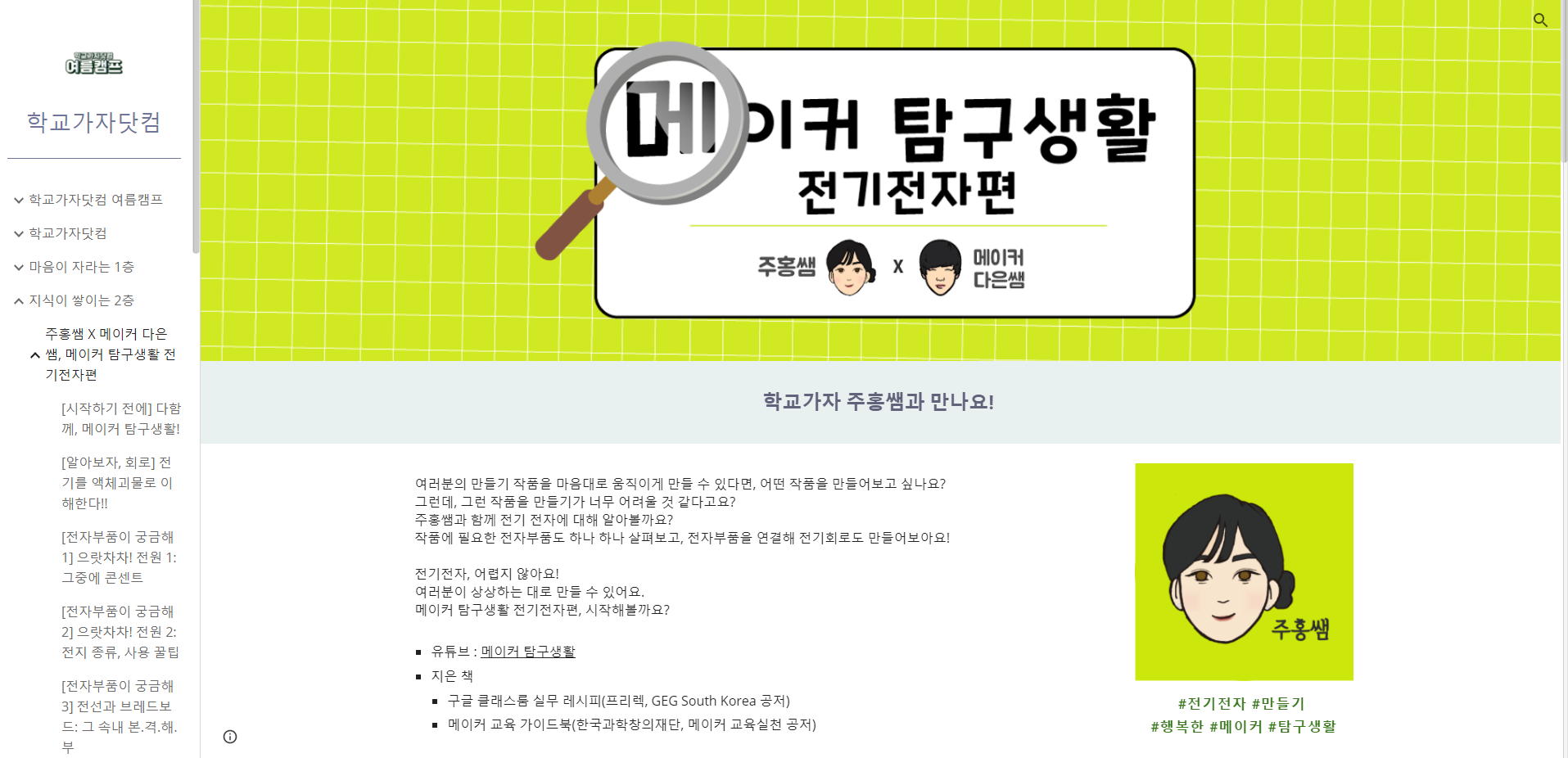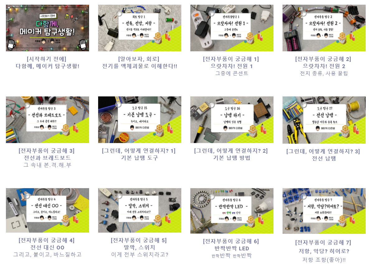 이번부터는 작년에 만들었던 메이커탐구생활 전기전자편을 내용으로 콘텐츠를 만들었어요.